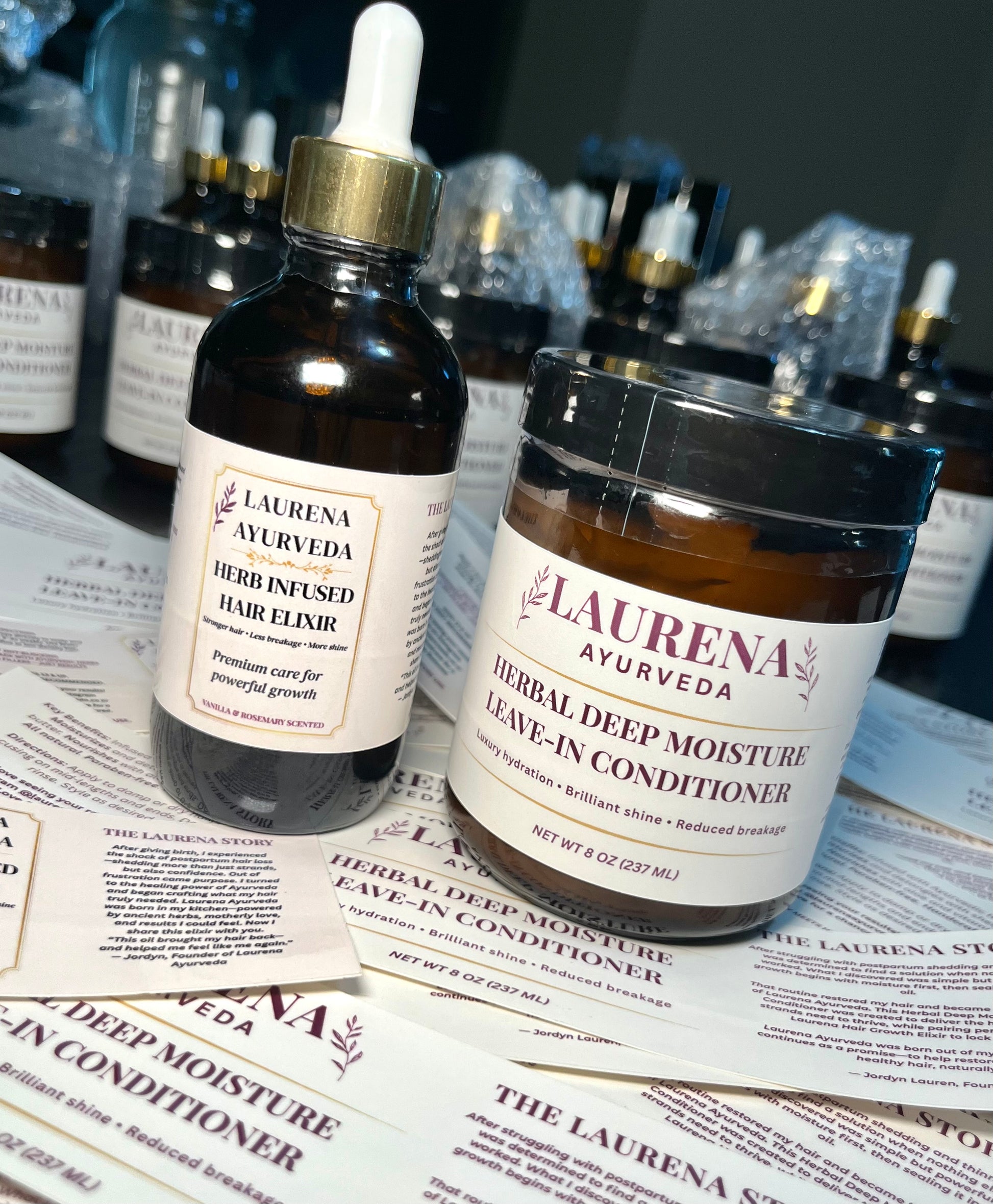 Achieve longer, stronger, healthier hair by pairing the Laurena Deep Moisture Herb-Infused Leave-In Conditioner with our best-selling Laurena Hair Growth Elixir.