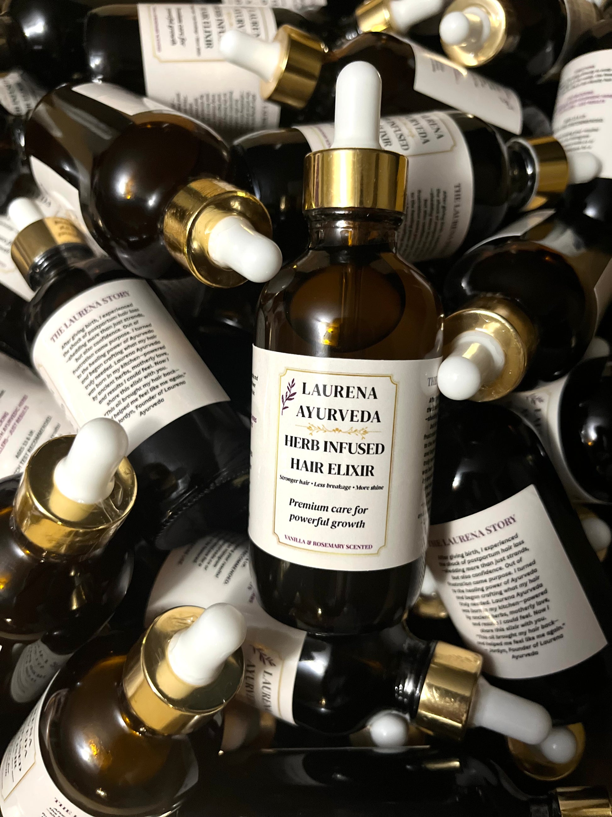 Laurena Ayurveda Hair Growth Elixir was handcrafted using ancient Ayurvedic herbs, cold-pressed oils, and powerful botanicals that restore, strengthen, and revive your crown naturally.